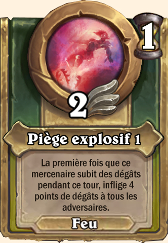 Piège explosif [...], inflige 8 points de dégâts à tous les adversaires [...], inflige 12 points de dégâts à tous les adversaires [...], inflige 14 points de dégâts à tous les adversaires [...], inflige 16 points de dégâts à tous les adversaires |