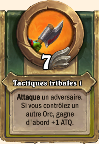Tactiques tribales Attaque un adversaire. Si vous contrôlez un autre Orc, gagne d'abord +2 ATQ Attaque un adversaire. Si vous contrôlez un autre Orc, gagne d'abord +3 ATQ Attaque un adversaire. Si vous contrôlez un autre Orc, gagne d'abord +4 ATQ Attaque un adversaire. Si vous contrôlez un autre Orc, gagne d'abord +5 ATQ |