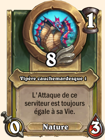 Vipère cauchemardesque L'Attaque de ce serviteur est toujours égale à sa Vie (0/7) L'Attaque de ce serviteur est toujours égale à sa Vie (0/11) L'Attaque de ce serviteur est toujours égale à sa Vie (0/13) L'Attaque de ce serviteur est toujours égale à sa Vie (0/15) |