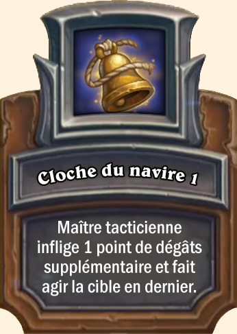 Cloche du navire Maître tacticienne inflige 2 points de dégâts supplémentaires et fait agir la cible en dernier Maître tacticienne inflige 3 points de dégâts supplémentaires et fait agir la cible en dernier Maître tacticienne inflige 4 points de dégâts supplémentaires et fait agir la cible en dernier |