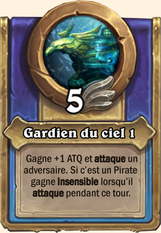 Gardien du ciel Gagne +2 ATQ et attaque un adversaire. [...] Gagne +3 ATQ et attaque un adversaire. [...] Gagne +4 ATQ et attaque un adversaire. [...] Gagne +5 ATQ et attaque un adversaire. [...] |