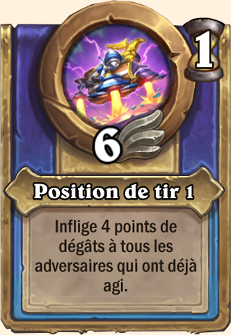 Position de tir Inflige 10 points de dégâts à tous les adversaires qui ont déjà agi Inflige 16 points de dégâts à tous les adversaires qui ont déjà agi Inflige 18 points de dégâts à tous les adversaires qui ont déjà agi Inflige 20 points de dégâts à tous les adversaires qui ont déjà agi |