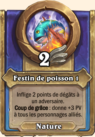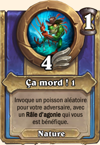 Ça mord ! Invoque un poisson aléatoire pour votre adversaire, avec un Râle d’agonie qui vous est bénéfique Invoque un poisson aléatoire pour votre adversaire, avec un Râle d’agonie qui vous est bénéfique Invoque un poisson aléatoire pour votre adversaire, avec un Râle d’agonie qui vous est bénéfique Invoque un poisson aléatoire pour votre adversaire, avec un Râle d’agonie qui vous est bénéfique |