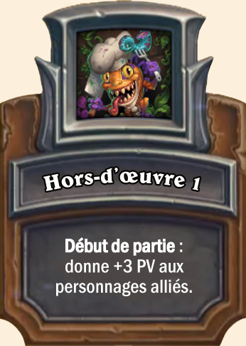 Hors-d’œuvre Début de partie : donne +5 PV aux personnages alliés Début de partie : donne +7 PV aux personnages alliés Début de partie : donne +9 PV aux personnages alliés |