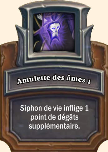 Amulette des âmes Siphon de vie inflige 2 points de dégâts supplémentaires Siphon de vie inflige 3 points de dégâts supplémentaires Siphon de vie inflige 4 points de dégâts supplémentaires |