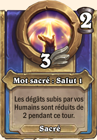 Mot sacré : Salut Les dégâts subis par vos Humains sont réduits de 5 pendant ce tour Les dégâts subis par vos Humains sont réduits de 8 pendant ce tour Les dégâts subis par vos Humains sont réduits de 9 pendant ce tour Les dégâts subis par vos Humains sont réduits de 10 pendant ce tour |