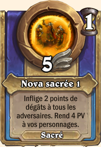 Maillet harmonique Nova sacrée inflige 3 points de dégâts supplémentaires Nova sacrée inflige 4 points de dégâts supplémentaires Nova sacrée inflige 5 points de dégâts supplémentaires |