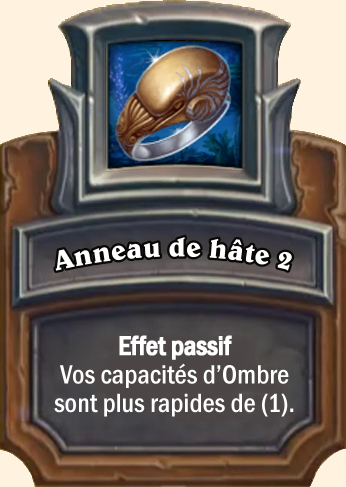 Anneau de hâte Effet passif. Vos capacités d'Ombre sont plus rapides de (2) Effet passif. Vos capacités d'Ombre sont plus rapides de (3) |