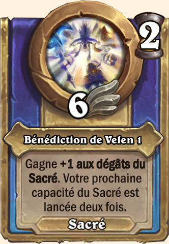 Bénédiction de Velen Gagne +2 aux dégâts du Sacré. Votre prochaine capacité du Sacré est lancée deux fois Gagne +3 aux dégâts du Sacré. Votre prochaine capacité du Sacré est lancée deux fois Gagne +3 aux dégâts du Sacré. Votre prochaine capacité du Sacré est lancée deux fois Gagne +3 aux dégâts du Sacré. Votre prochaine capacité du Sacré est lancée deux fois |
