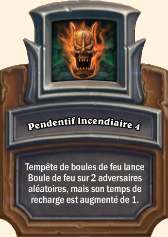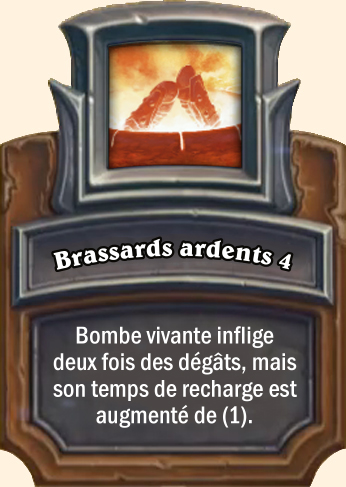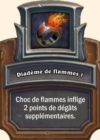 Diadème de flammes Choc de flammes inflige 3 points de dégâts supplémentaires Choc de flammes inflige 4 points de dégâts supplémentaires Choc de flammes inflige 5 points de dégâts supplémentaires |