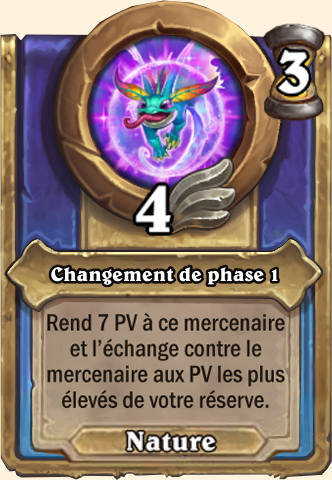 Changement de phase Rend 14 PV à ce mercenaire et l’échange contre le mercenaire aux PV les plus élevés de votre réserve Rend 21 PV à ce mercenaire et l’échange contre le mercenaire aux PV les plus élevés de votre réserve Rend 23 PV à ce mercenaire et l’échange contre le mercenaire aux PV les plus élevés de votre réserve Rend 25 PV à ce mercenaire et l’échange contre le mercenaire aux PV les plus élevés de votre réserve |