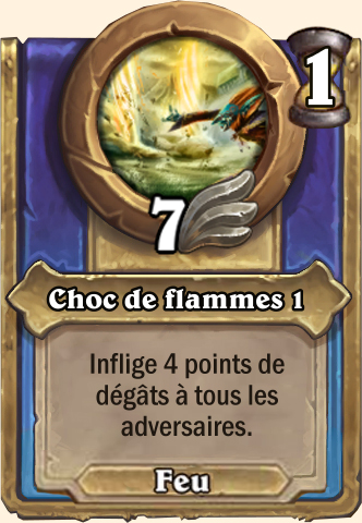 Choc de flammes Inflige 8 points de dégâts à tous les ennemis Inflige 12 points de dégâts à tous les ennemis Inflige 13 points de dégâts à tous les ennemis Inflige 14 points de dégâts à tous les ennemis |