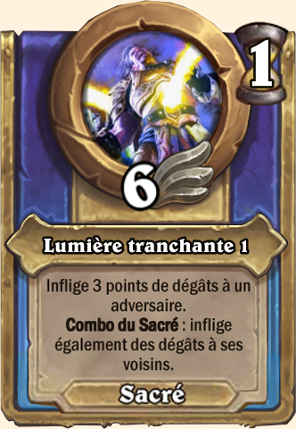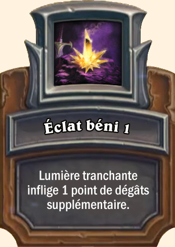 Éclat béni Lumière tranchante inflige 2 points de dégâts supplémentaires Lumière tranchante inflige 2 points de dégâts supplémentaires Lumière tranchante inflige 2 points de dégâts supplémentaires |