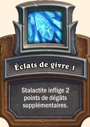 Éclats de givre Stalactite inflige 3 points de dégâts supplémentaires Stalactite inflige 4 points de dégâts supplémentaires Stalactite inflige 5 points de dégâts supplémentaires |