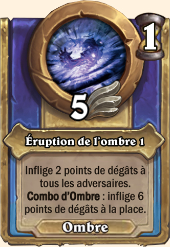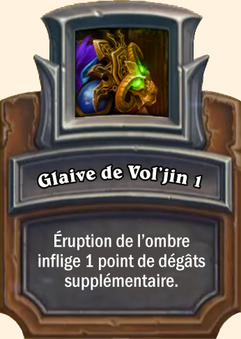 Glaive de Vol'jin Éruption de l'ombre inflige 2 points de dégâts supplémentaires Éruption de l'ombre inflige 3 points de dégâts supplémentaires Éruption de l'ombre inflige 4 points de dégâts supplémentaires |