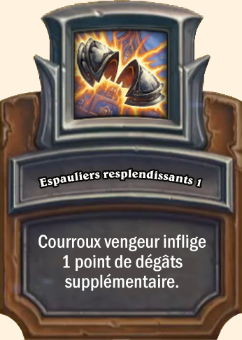 Espauliers resplendissants Courroux vengeur inflige 2 points de dégâts supplémentaires Courroux vengeur inflige 3 points de dégâts supplémentaires Courroux vengeur inflige 4 points de dégâts supplémentaires |
