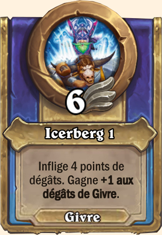 Icerberg Inflige 7 points de dégâts. Gagne +2 aux dégâts de Givre Inflige 10 points de dégâts. Gagne +3 aux dégâts de Givre Inflige 11 points de dégâts. Gagne +3 aux dégâts de Givre Inflige 12 points de dégâts. Gagne +3 aux dégâts de Givre |