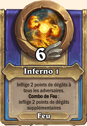 Inferno Inflige 4 points de dégâts [...]. Combo de Feu : inflige 4 points de dégâts supplémentaires Inflige 6 points de dégâts [...]. Combo de Feu : inflige 6 points de dégâts supplémentaires Inflige 7 points de dégâts [...]. Combo de Feu : inflige 7 points de dégâts supplémentaires Inflige 8 points de dégâts [...]. Combo de Feu : inflige 8 points de dégâts supplémentaires |