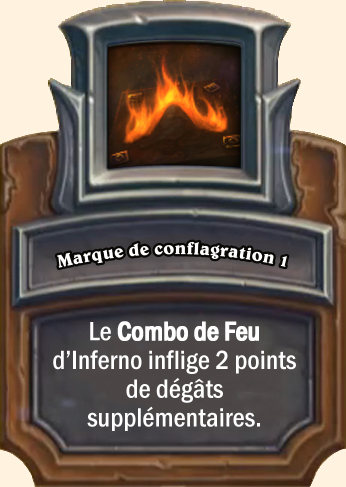 Marque de conflagration Le Combo de Feu d’Inferno inflige 3 points de dégâts supplémentaires Le Combo de Feu d’Inferno inflige 4 points de dégâts supplémentaires Le Combo de Feu d’Inferno inflige 5 points de dégâts supplémentaires |