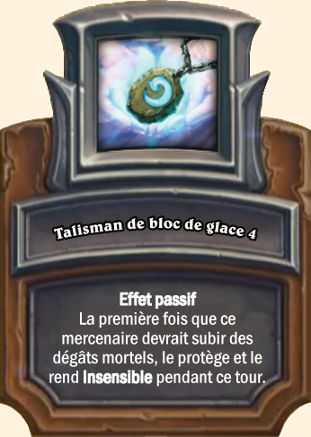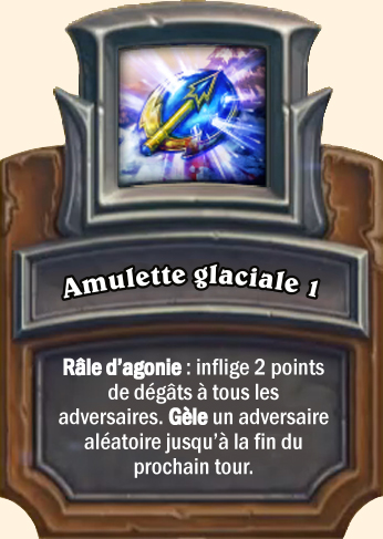 Amulette glaciale Râle d'agonie : inflige 4 points de dégâts à tous les adversaires. [...] Râle d'agonie : inflige 6 points de dégâts à tous les adversaires. [...] Râle d'agonie : inflige 8 points de dégâts à tous les adversaires. [...] |
