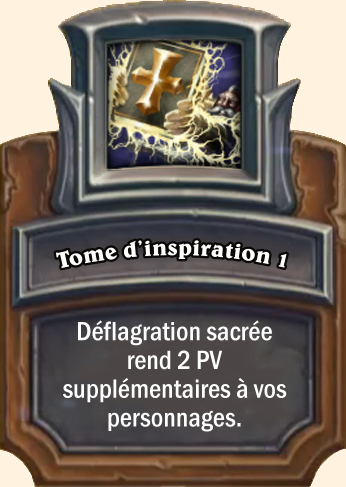 Tome d'inspiration Déflagration sacrée rend 3 PV supplémentaires à vos personnages Déflagration sacrée rend 4 PV supplémentaires à vos personnages Déflagration sacrée rend 5 PV supplémentaires à vos personnages |
