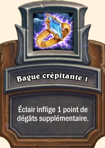 Bague crépitante Éclair inflige 2 points de dégâts supplémentaires Éclair inflige 3 points de dégâts supplémentaires Éclair inflige 4 points de dégâts supplémentaires |