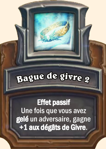 Bague de givre Effet passif. Une fois que vous avez gelé un adversaire, gagne +2 aux dégâts de Givre Effet passif. Une fois que vous avez gelé un adversaire, gagne +3 aux dégâts de Givre |