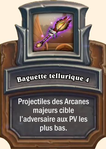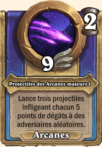Projectiles des Arcanes majeurs Lance trois projectiles infligeant chacun 9 points de dégâts à des adversaires aléatoires Lance trois projectiles infligeant chacun 13 points de dégâts à des adversaires aléatoires Lance trois projectiles infligeant chacun 14 points de dégâts à des adversaires aléatoires Lance trois projectiles infligeant chacun 15 points de dégâts à des adversaires aléatoires |