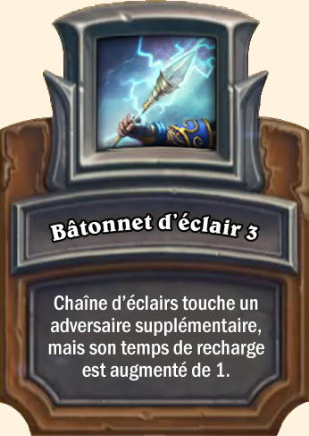 Bâtonnet d'éclair Chaîne d'éclairs touche deux adversaires supplémentaires, mais son temps de recharge est augmenté de 1 |