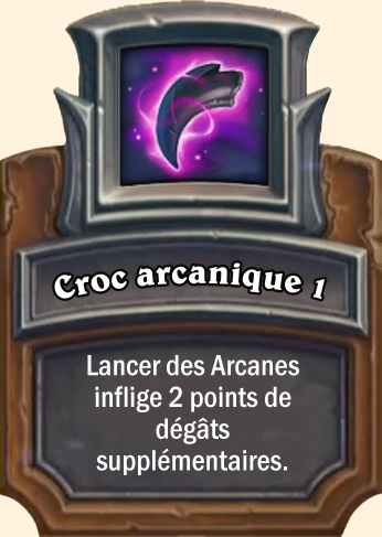Croc arcanique Lancer des Arcanes inflige 3 points de dégâts supplémentaires Lancer des Arcanes inflige 4 points de dégâts supplémentaires Lancer des Arcanes inflige 5 points de dégâts supplémentaires |