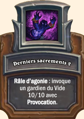 Derniers sacrements Râle d'agonie : invoque un gardien du Vide 17/17 avec Provocation Râle d'agonie : invoque un gardien du Vide 25/25 avec Provocation |