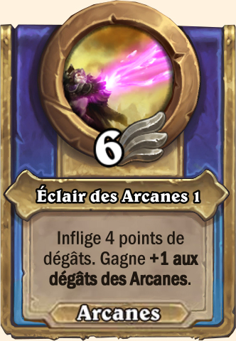Éclair des Arcanes Inflige 7 points de dégâts. Gagne +2 aux dégâts des Arcanes Inflige 10 points de dégâts. Gagne +3 aux dégâts des Arcanes Inflige 11 points de dégâts. Gagne +3 aux dégâts des Arcanes Inflige 12 points de dégâts. Gagne +3 aux dégâts des Arcanes |