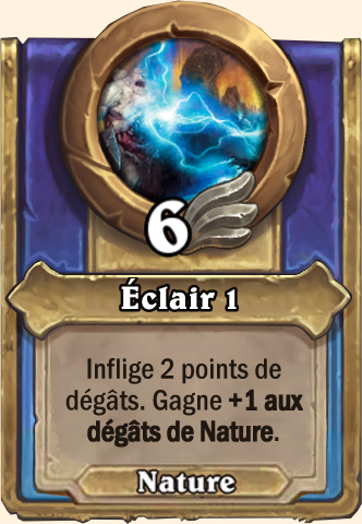 Éclair Inflige 5 points de dégâts. Gagne +2 aux dégâts de Nature Inflige 8 points de dégâts. Gagne +3 aux dégâts de Nature Inflige 9 points de dégâts. Gagne +3 aux dégâts de Nature Inflige 10 points de dégâts. Gagne +3 aux dégâts de Nature |