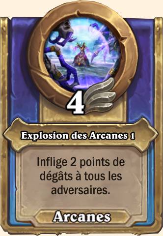 Explosion des Arcanes Inflige 4 points de dégâts à tous les adversaires Inflige 6 points de dégâts à tous les adversaires Inflige 7 points de dégâts à tous les adversaires Inflige 8 points de dégâts à tous les adversaires |