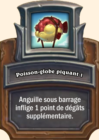 Poisson-globe piquant Anguille sous barrage inflige 2 points de dégâts supplémentaires Anguille sous barrage inflige 3 points de dégâts supplémentaires Anguille sous barrage inflige 4 points de dégâts supplémentaires |