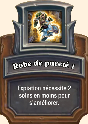Robe de pureté Expiation nécessite 3 soins en moins pour s'améliorer Expiation nécessite 4 soins en moins pour s'améliorer Expiation nécessite 5 soins en moins pour s'améliorer |