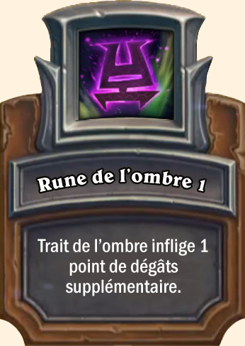 Rune de l'ombre Trait de l'ombre inflige 2 points de dégâts supplémentaires Trait de l'ombre inflige 3 points de dégâts supplémentaires Trait de l'ombre inflige 4 points de dégâts supplémentaires |