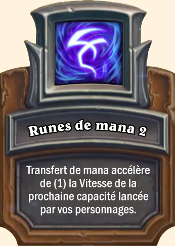 Runes de mana Transfert de mana accélère de (2) la Vitesse de la prochaine capacité lancée par vos personnages Transfert de mana accélère de (3) la Vitesse de la prochaine capacité lancée par vos personnages |
