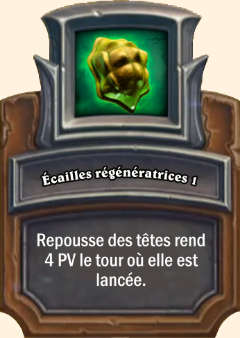 Écailles régénératrices Repousse des têtes rend 8 PV le tour où elle est lancée Repousse des têtes rend 12 PV le tour où elle est lancée Repousse des têtes rend 16 PV le tour où elle est lancée |