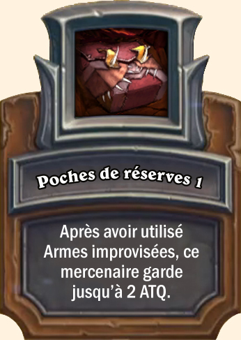 Poches de réserves Après avoir utilisé Armes improvisées, ce mercenaire garde jusqu’à 3 ATQ Après avoir utilisé Armes improvisées, ce mercenaire garde jusqu’à 4 ATQ Après avoir utilisé Armes improvisées, ce mercenaire garde jusqu’à 5 ATQ |