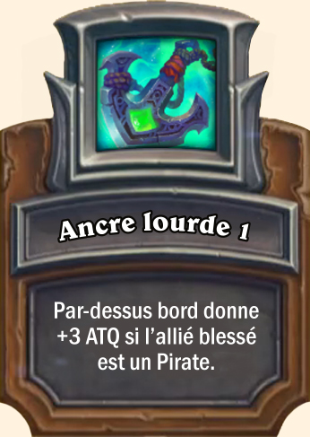 Ancre lourde Par-dessus bord donne +4 ATQ si l’allié blessé est un Pirate Par-dessus bord donne +5 ATQ si l’allié blessé est un Pirate Par-dessus bord donne +6 ATQ si l’allié blessé est un Pirate |