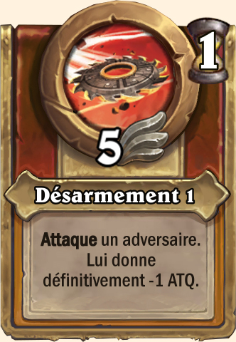 Désarmement Attaque un adversaire. Lui donne définitivement -2 ATQ Attaque un adversaire. Lui donne définitivement -3 ATQ Attaque un adversaire. Lui donne définitivement -4 ATQ Attaque un adversaire. Lui donne définitivement -5 ATQ |