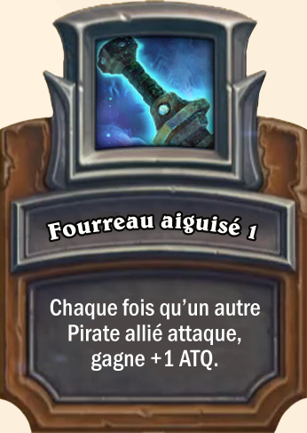 Fourreau aiguisé Chaque fois qu’un autre Pirate allié attaque, gagne +2 ATQ Chaque fois qu’un autre Pirate allié attaque, gagne +3 ATQ Chaque fois qu’un autre Pirate allié attaque, gagne +4 ATQ |