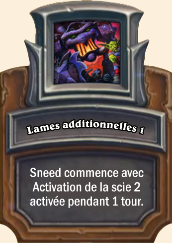 Lames additionnelles Sneed commence avec Activation de la scie 3 activée pendant 1 tour Sneed commence avec Activation de la scie 4 activée pendant 1 tour Sneed commence avec Activation de la scie 5 activée pendant 1 tour |