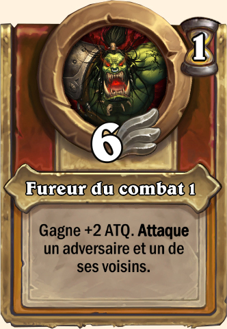 Fureur du combat Gagne +4 ATQ. Attaque un adversaire et un de ses voisins Gagne +6 ATQ. Attaque un adversaire et un de ses voisins Gagne +7 ATQ. Attaque un adversaire et un de ses voisins Gagne +8 ATQ. Attaque un adversaire et un de ses voisins |