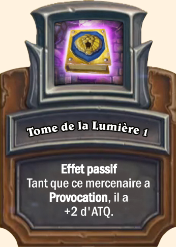 Tome de la Lumière Effet passif : Tant que ce mercenaire a Provocation, il a +4 ATQ Effet passif : Tant que ce mercenaire a Provocation, il a +6 ATQ Effet passif : Tant que ce mercenaire a Provocation, il a +8 ATQ |