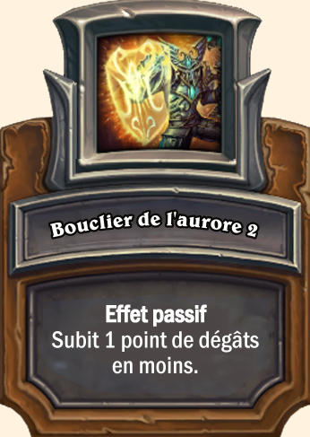 Bouclier de l'aurore Effet passif : Subit 2 points de dégâts en moins Effet passif : Subit 3 points de dégâts en moins |