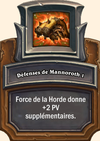 Défenses de Mannoroth Force de la Horde donne +4 PV supplémentaires Force de la Horde donne +6 PV supplémentaires Force de la Horde donne +8 PV supplémentaires |
