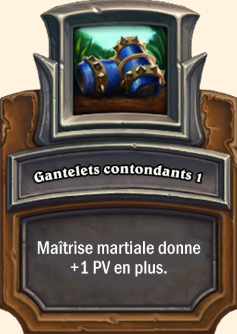 Gantelets contondants Maîtrise martiale donne +2 PV en plus Maîtrise martiale donne +3 PV en plus Maîtrise martiale donne +4 PV en plus |