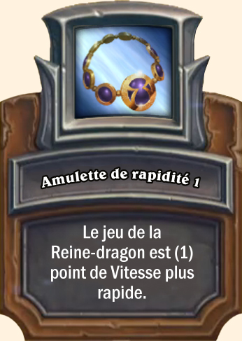 Amulette de rapidité Le jeu de la Reine-dragon est (2) points de Vitesse plus rapide. Le jeu de la Reine-dragon est (3) points de Vitesse plus rapide Le jeu de la Reine-dragon est (4) points de Vitesse plus rapide |